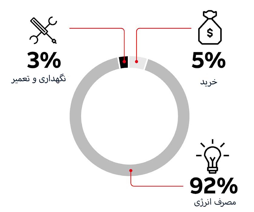 برای تجزیه و تحلیل هزینه و فایده این مساله در نظر بگیرید که یک موتور به طور مداوم به مدت 20 ساعت در روز و به مدت 365 روز در سال با 80 درصد بارگزاری مشغول کار باشد. به این معنا که در هر سال 7300 ساعت کار میکند.