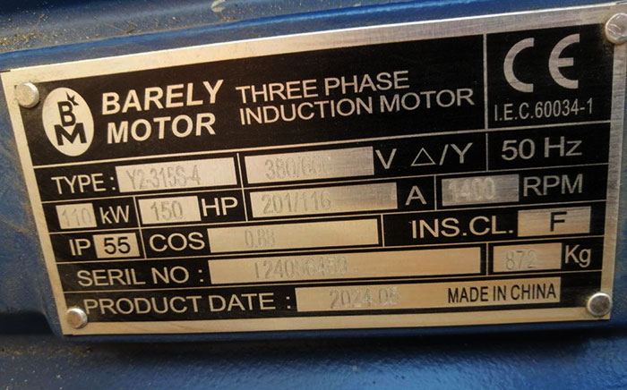 جنس بدنه الکتروموتور 110 کیلووات 1400 دور بارلی موتور مونتاژ ایران